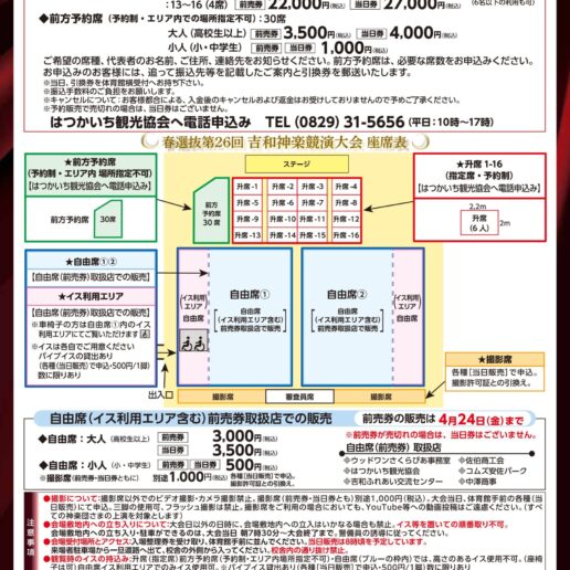 撮影席以外でのビデオ撮影・カメラ撮影禁止。撮影席(前売券・当日券とも)別途1,000円(税込)。